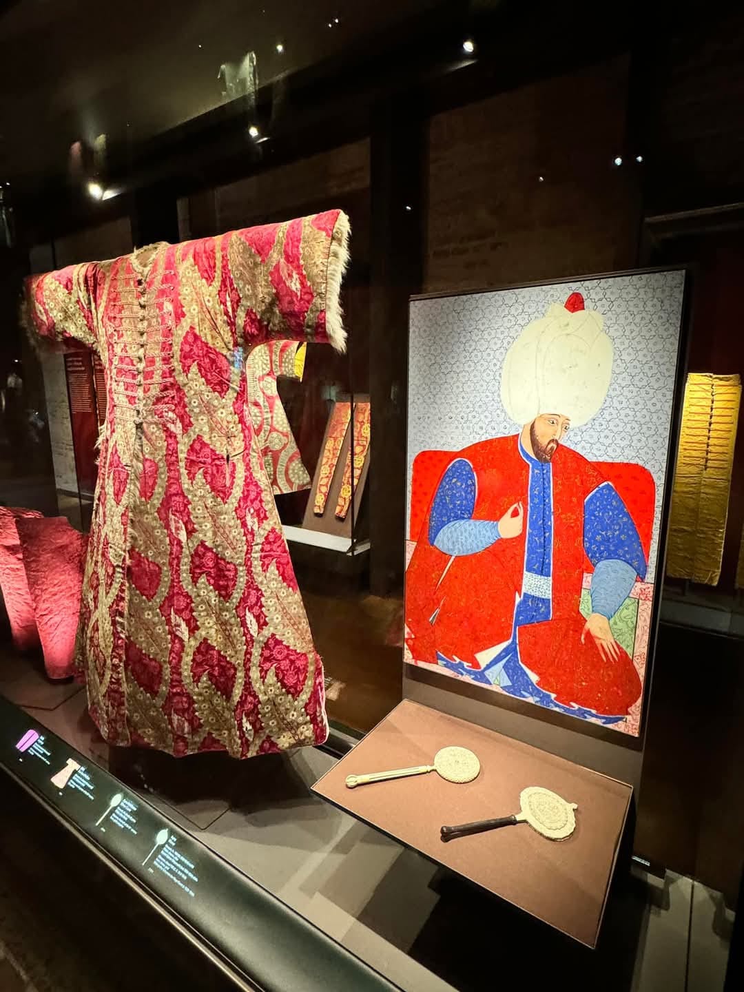 يضم القصر مجموعة رائعة من الملابس السلطانية التي كانت تُصنع يدويًا باستخدام أفخر أنواع الأقمشة، مثل الحرير والديباج. تعكس هذه الملابس الذوق الرفيع للسلاطين، وتتميز بتطريزها الذهبي المعقد.